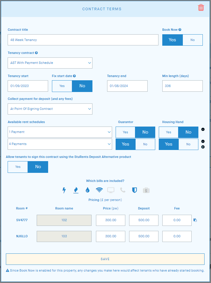 A fixed start date ensures that Book Now tenancies will always start on the date set and cannot be changed by the tenant. The end date can still be changed subject to the minimum length.
