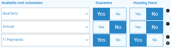 Set the Guarantor requirements for each rent schedule.