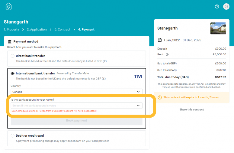 You have the option to pay via TransferMate (international bank transfers) for your deposit payment.