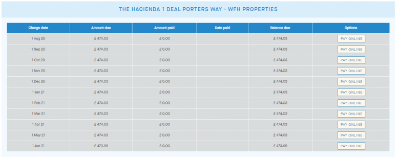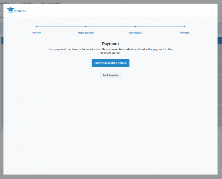 The tenant can also find the Transaction details on their Rents dashboard by clicking the Review payments button.