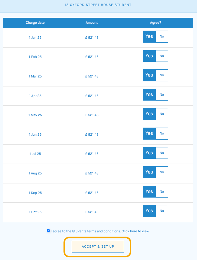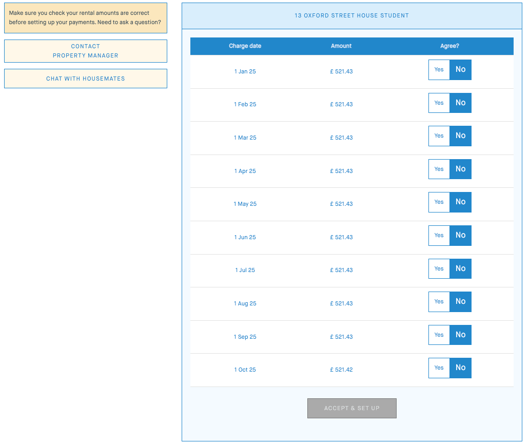 When the rent payment is shown in GBP(£), the Direct Debit can only be set up with a UK bank account.