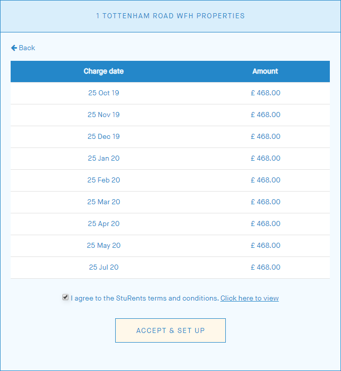 Review the payment dates and amounts before clicking the Accept & set up button.