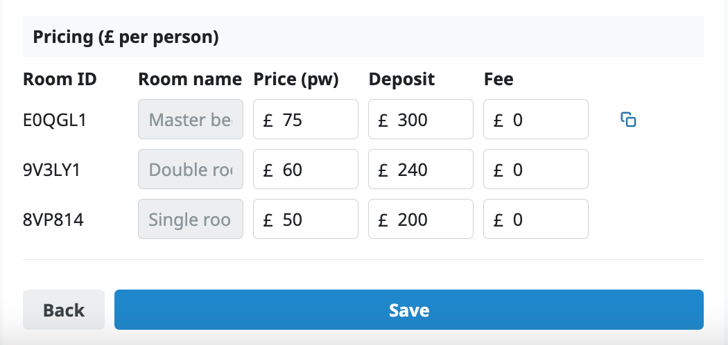 Scroll to the bottom of the page and review the pricing section (Price, Deposit) and then click Save.